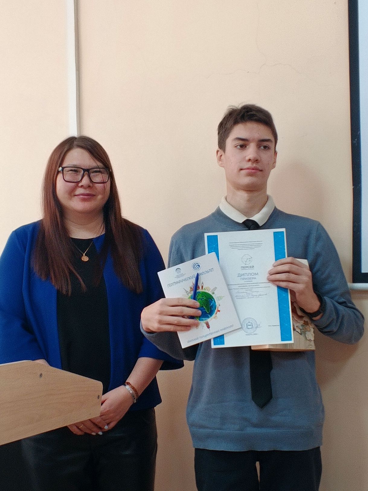 Вместе с преподавателями в работе секции приняли участие студенты географического факультета, которые выступили в роли экспертов – Кузнецов Матвей (студент 3 курса направления «Гидрометеорология») и Кочелаева Дарья (студент 4 курса направления «География»).