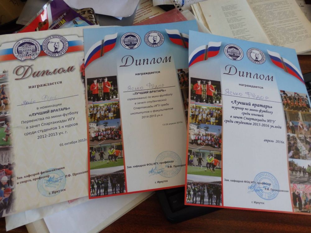 Федор Ясько - футболист, неоднократно (трижды!!!) признан "Лучшим вратарем", член сборной ИГУ по футболу. Только благодаря ему, наша факультетская команда занимает в спартакиаде ИГУ уже второй раз 3 призовое место!